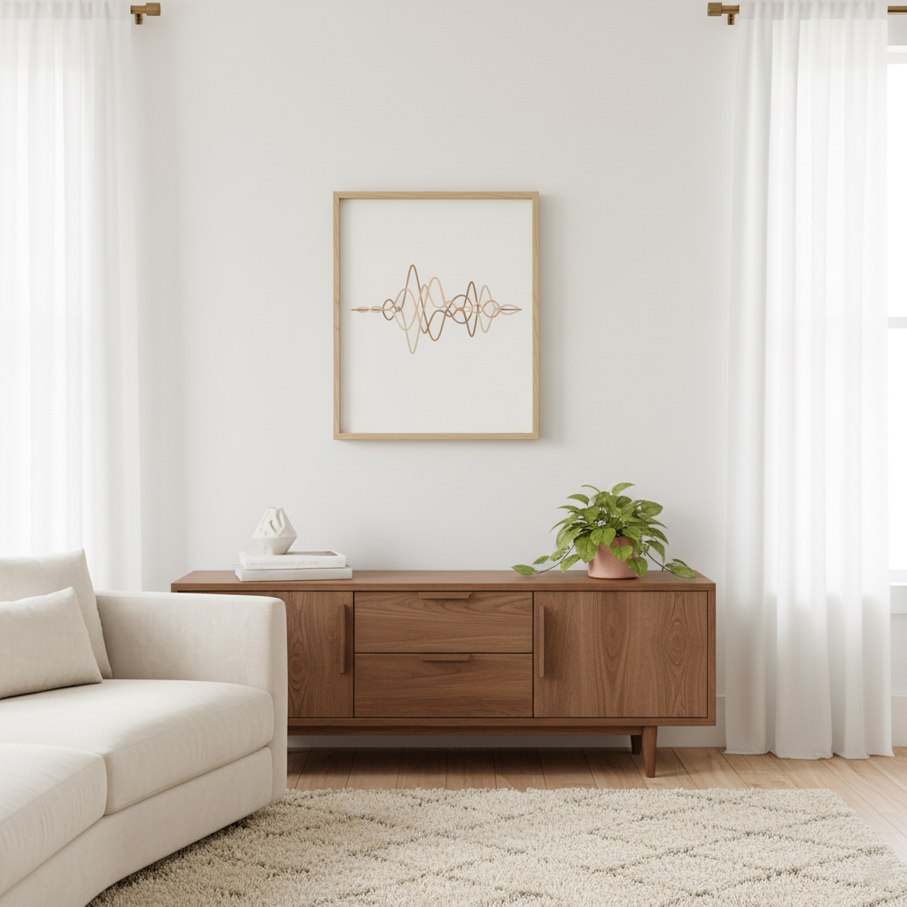 Abstract wave-line artwork in earthy tones