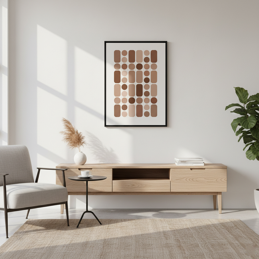 Add a touch of contemporary elegance to your space with the Framevilla Modern Geometric Wall Frame. Featuring a stylish abstract design in warm earthy browns and beiges, this frame brings balance, sophistication, and warmth to any interior.