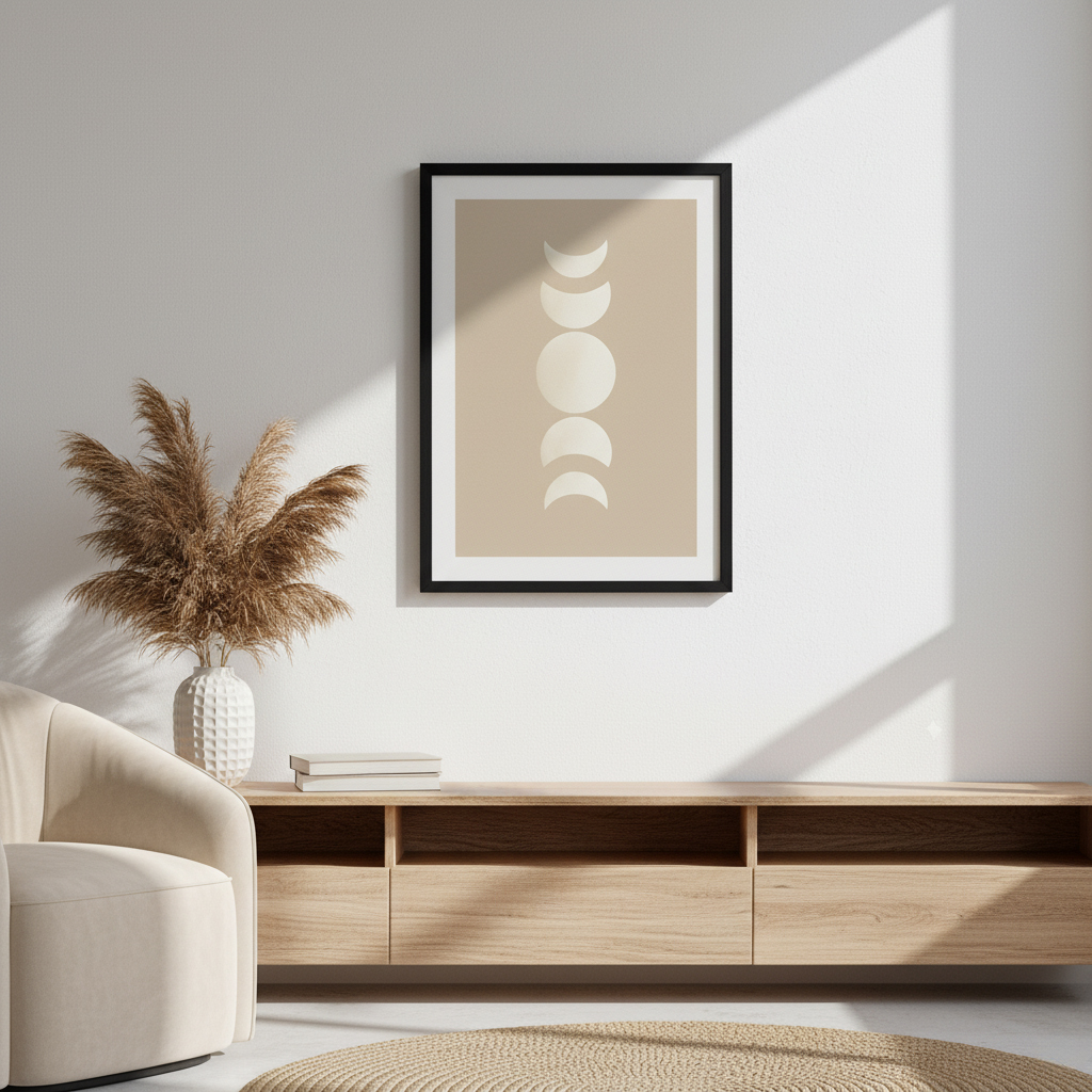 Minimalist lunar phase design in earthy beige and white