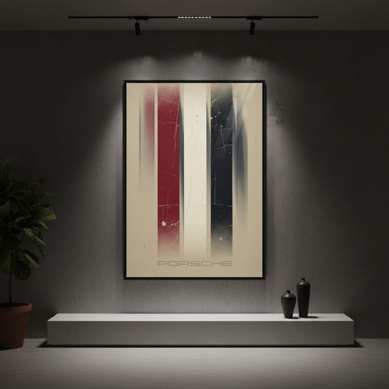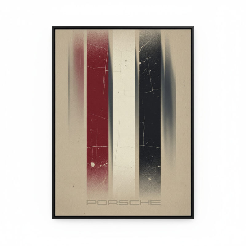 Celebrate timeless automotive heritage with the Framevilla Porsche-Inspired Vintage Wall Art. Designed with striking red, cream, and black distressed stripes, this artwork channels speed, elegance, and classic racing spirit. The subtle “Porsche” typography at the base adds sophistication without overwhelming the design.